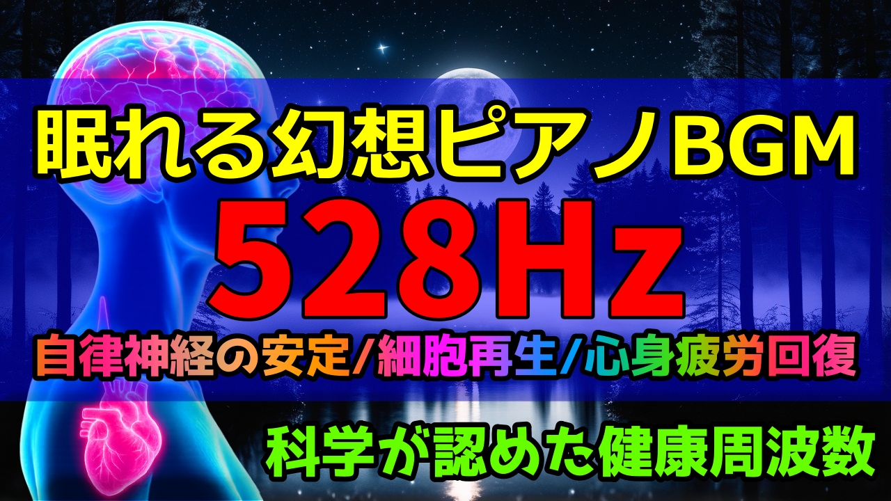 【サムネイル1(YouTube)】10分で眠れる幻想ピアノBGM×細胞が喜ぶ528Hz融合の究極ヒーリングBGM!自律神経に優しい 睡眠 リラックスBGM.jpg 最終更新日時 : STAR DUST BGM幻想ピアノと528Hzを融合した癒しのピアノBGM。心を静かに整えたい時間に最適です。